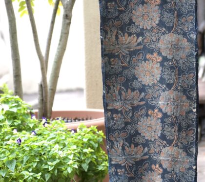 いくつかの窓が生地幅よりも少し大きい為に一幅使いが出来ず、両サイドに無地の生地を縫い合わせて制作をお願いしました。