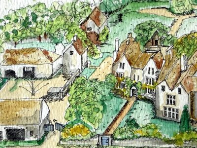 ウイリアムモリスが愛したケルムスコットの別荘のスケッチです。